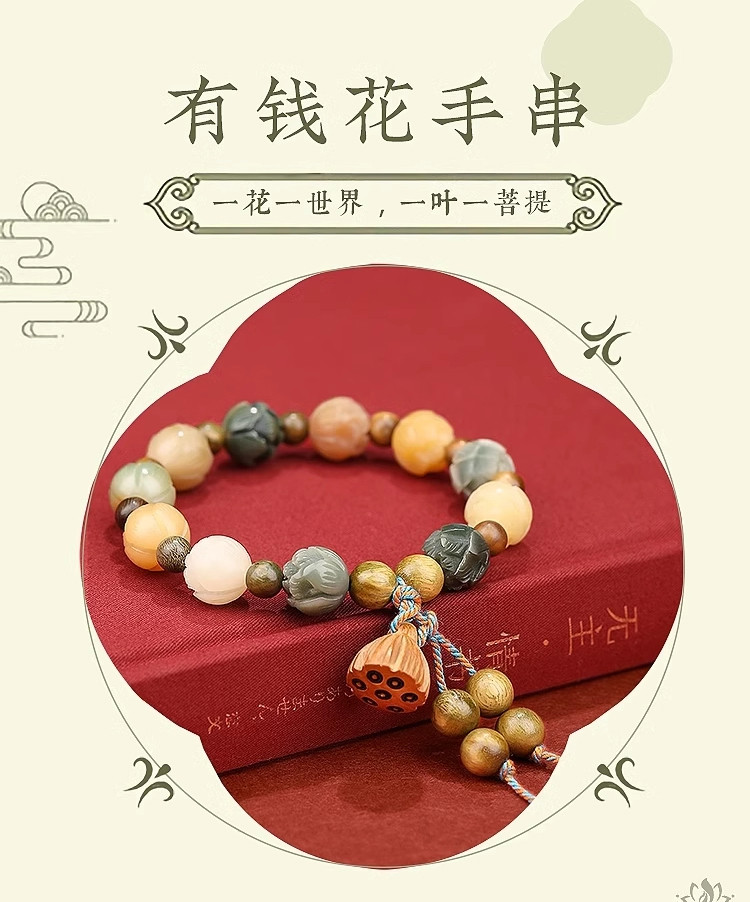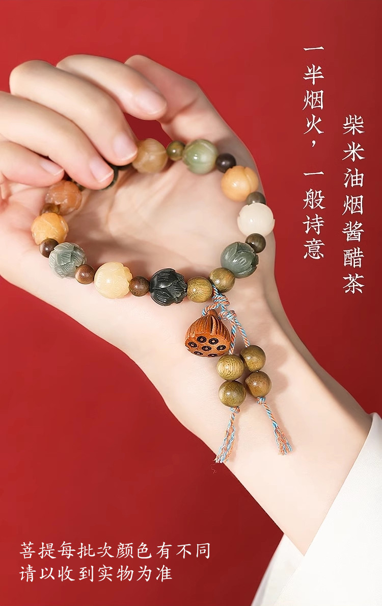 材质: 菩提(人工优化)+绿檀+桃木+编绳